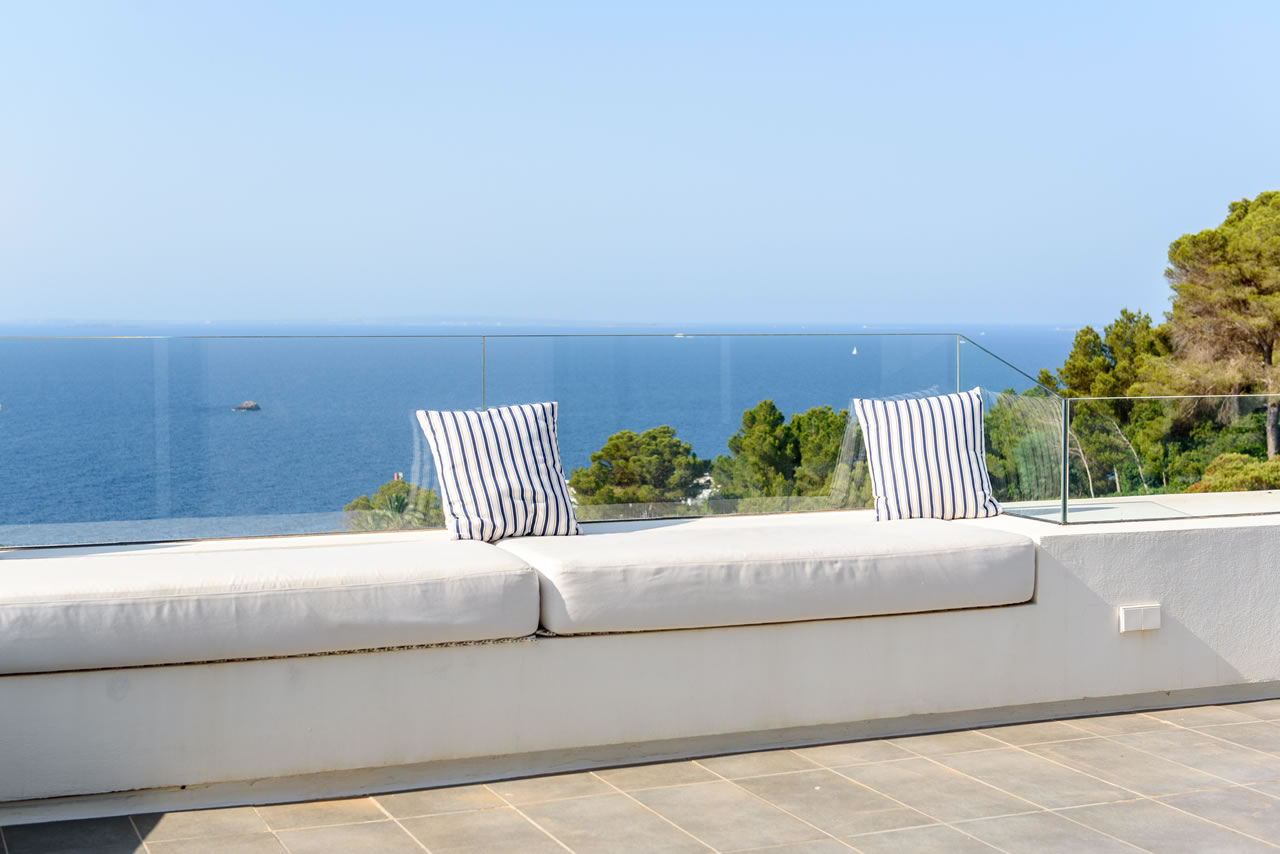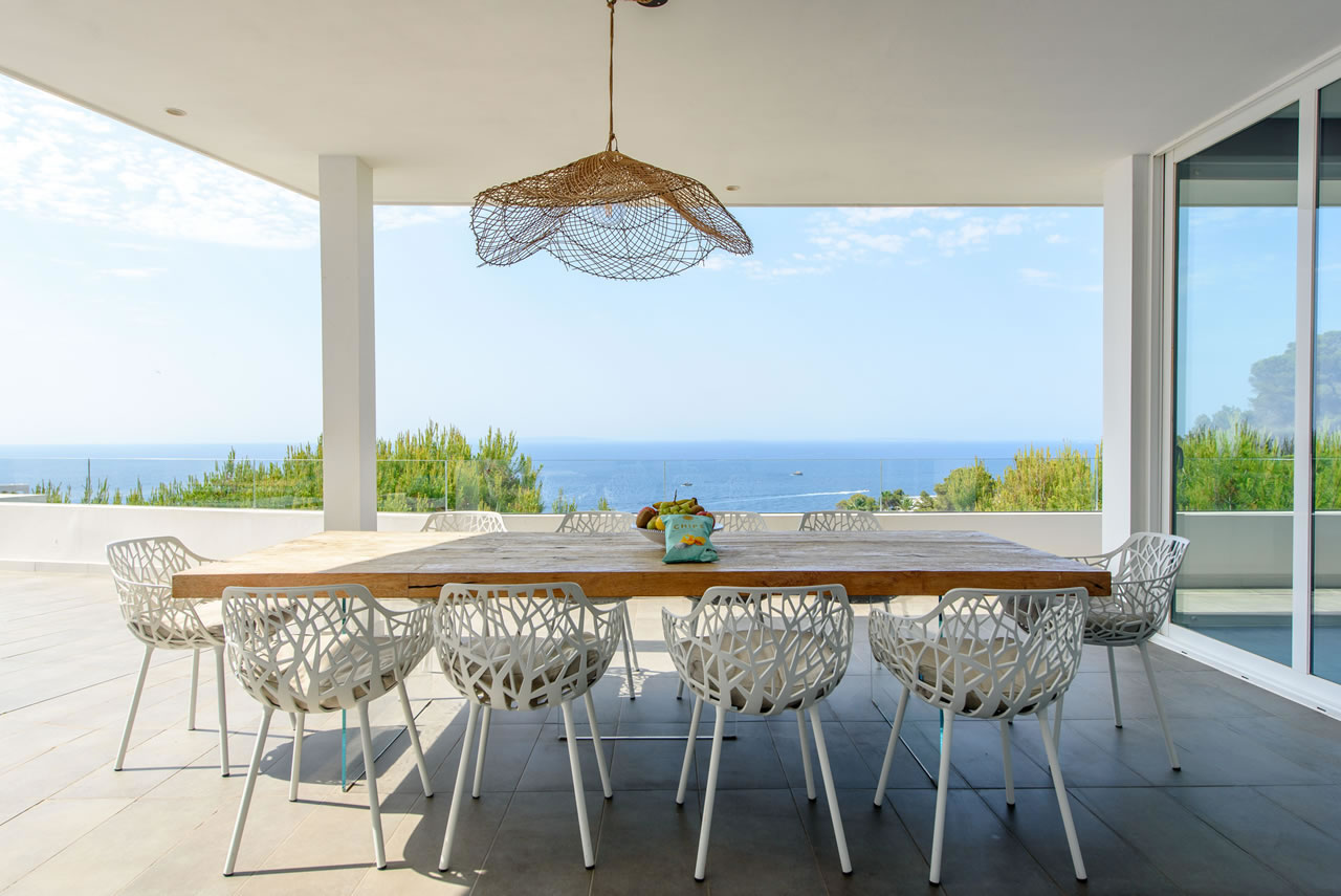 Nine/Ten is a beautiful and luxurious villa, recently renovated and decorated in a contemporary style. From the terrace and the villa one enjoys a breath taking view over the Mediterranean Sea and Formentera.